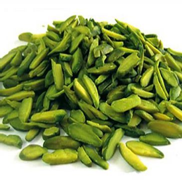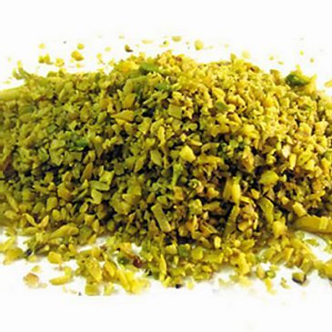 I pistacchi snocciolati mantengono ancora la loro sfumatura verde dopo essere stati tagliati a dadini. Sono classificati e setacciati per rimuovere la maggior quantità possibile di farina prima di essere spediti. Sono fantastici se aggiunti a varie forme di cucina, essendo particolarmente apprezzati come associazione con il cioccolato per aggiungere ulteriore profondità e sapore.